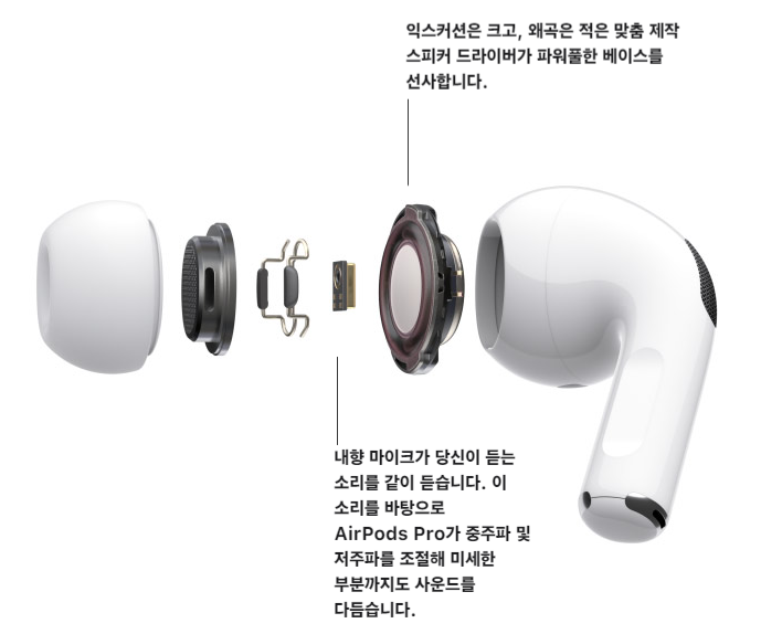 에어팟 프로는 내향마이크를 이용한 미세한 사운드 조정을 자랑한다.