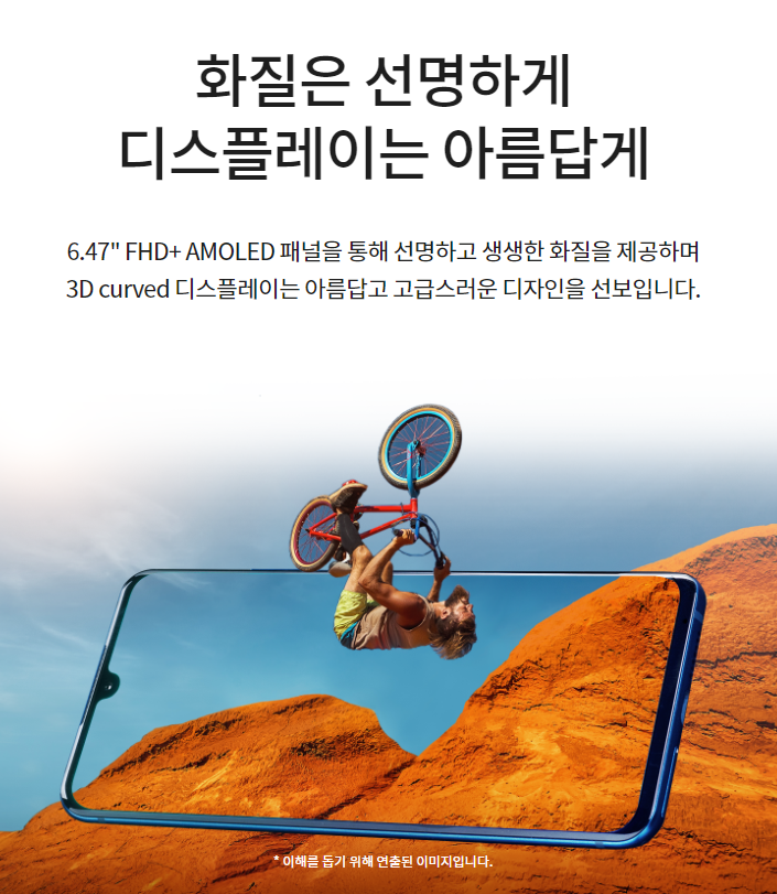 디스플레이로는 159.2×73.4×7.9mm의 액정과 메인스크린에 6.47” notch FHD+(2340x1080),