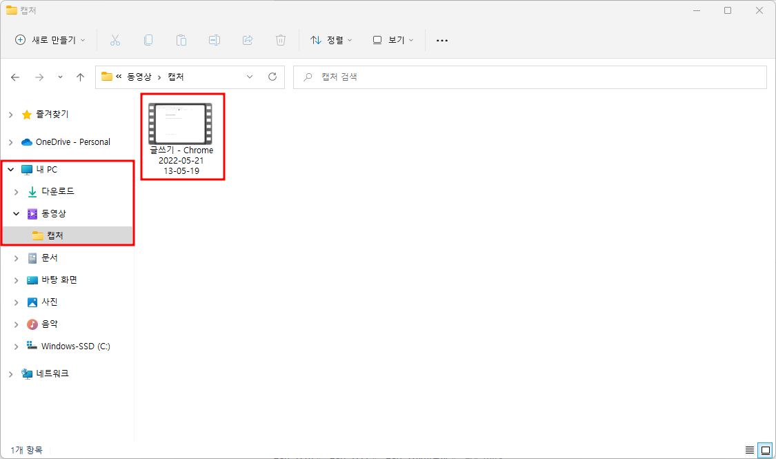 녹화된 영상은 내컴퓨터 / 동영상 / 캡처 혹은 내컴퓨터 / 동영상 에 저장된다.